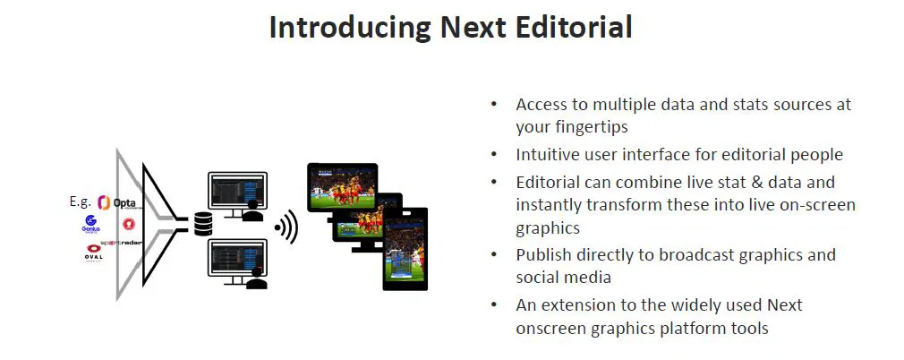 This new feature looks at the data provided by the statistics supplier because this AI tool reads the data and knows the context, the editor can use it like a copilot. Van Rossum: “Look, the system says, these numbers may be relevant for you. It is a recommendation engine. The advantage for the editor is that he can search across multiple live data sources to make combinations between two teams, to name one example, or to display very specific information about a single player. He has it all in a clear interface, with which he can prepare the graphic immediately. He also sees how it will look on screen.” The benefit goes beyond saving time. Because the editor can quickly shape the suggested or self prepared graphics, the operator can focus fully on the match. Van Rossum: “If there is extra information to add, the editor brings it in. That way you build the story together, you have more time for the content. And that leads to better storytelling. Next Editorial is a tool that not only supports the editorial team around a sports match and gives them more insight, it also greatly increases the speed of putting live data on air in the form of graphics.”